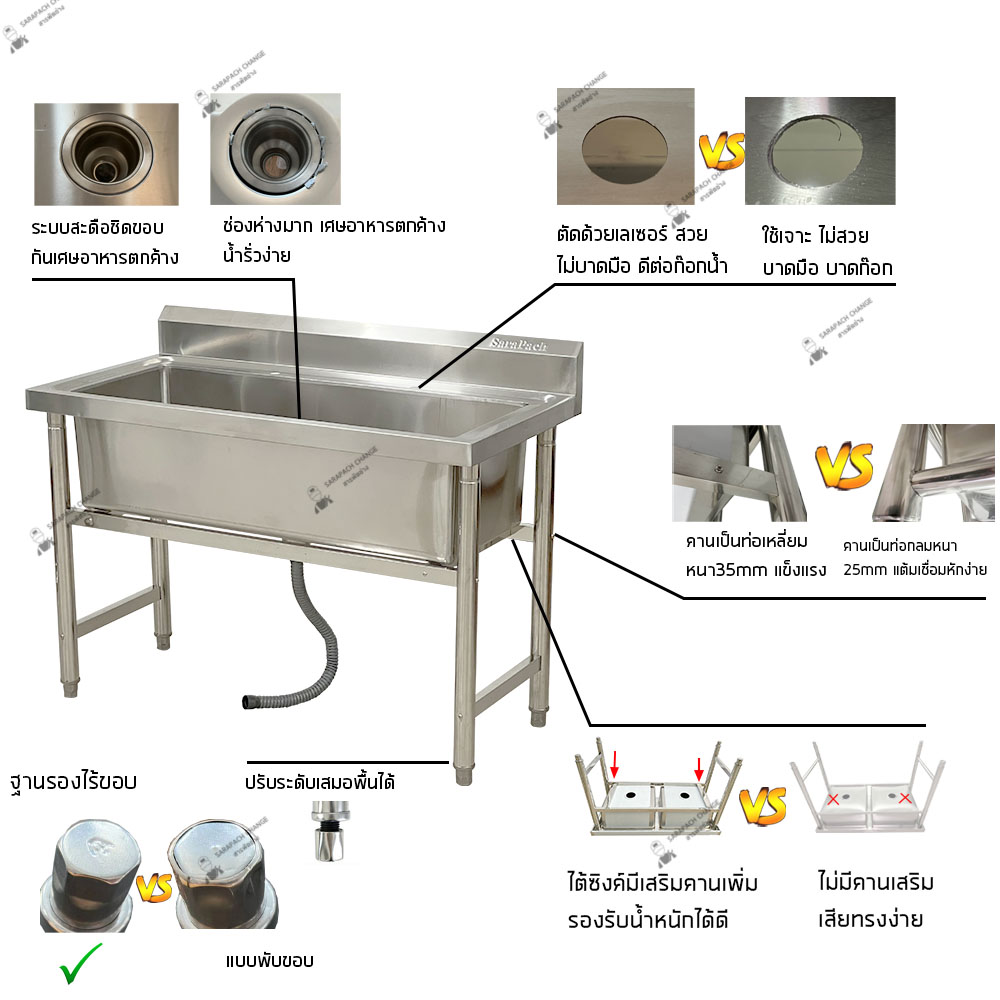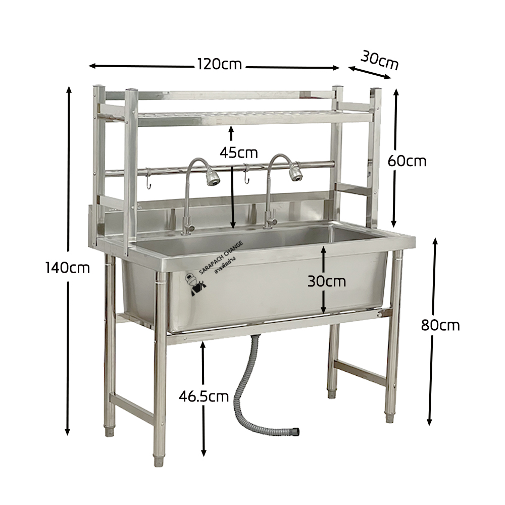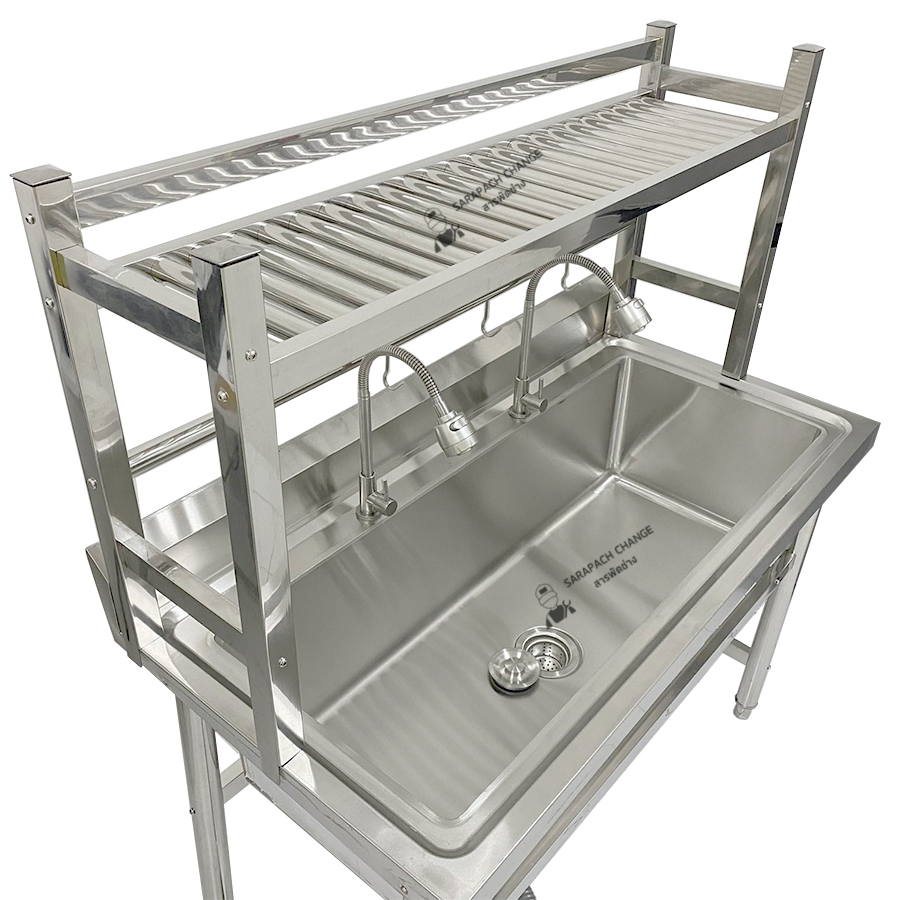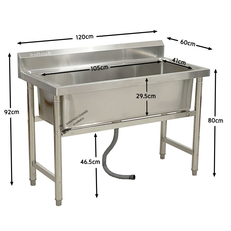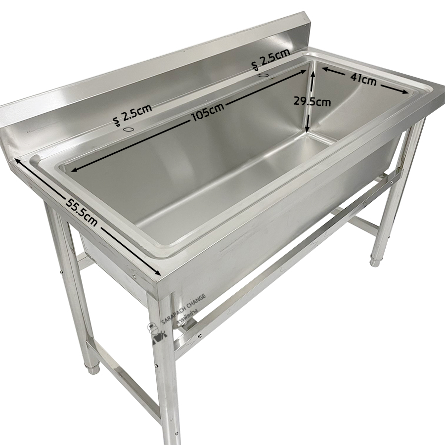 คุณสมบัติ - ขนาดซิงค์ 120x60x80 ซม. - ขนาดรวมที่คว่ำจาน 120x60x140 ซม. - ขนาดหลุม 105x41x29.5 ซม. - ขนาดพื้นที่คว่ำจาน 24*113 ซม. - โครงทำจากสแตนเลสขนาก 4*4 ซม. - คานคว่ำจานทำจากสแตนเลสขนาด 3 ซม. แข็งแรงมาก รับน้ำหนักได้ 60 กีโล - ทำจากสแตนเลส 201 หนา: 0.8-1 mm - มีรูสำหรับใส่ก๊อกน้ำขนาด 2.5 ซม. // รูน้ำทิ้ง ขนาด 4 นิ้ว - ขาทำจากท่อสแตนเลสขนาด 4.8 ซม. วิธีการดูแล/รักษา