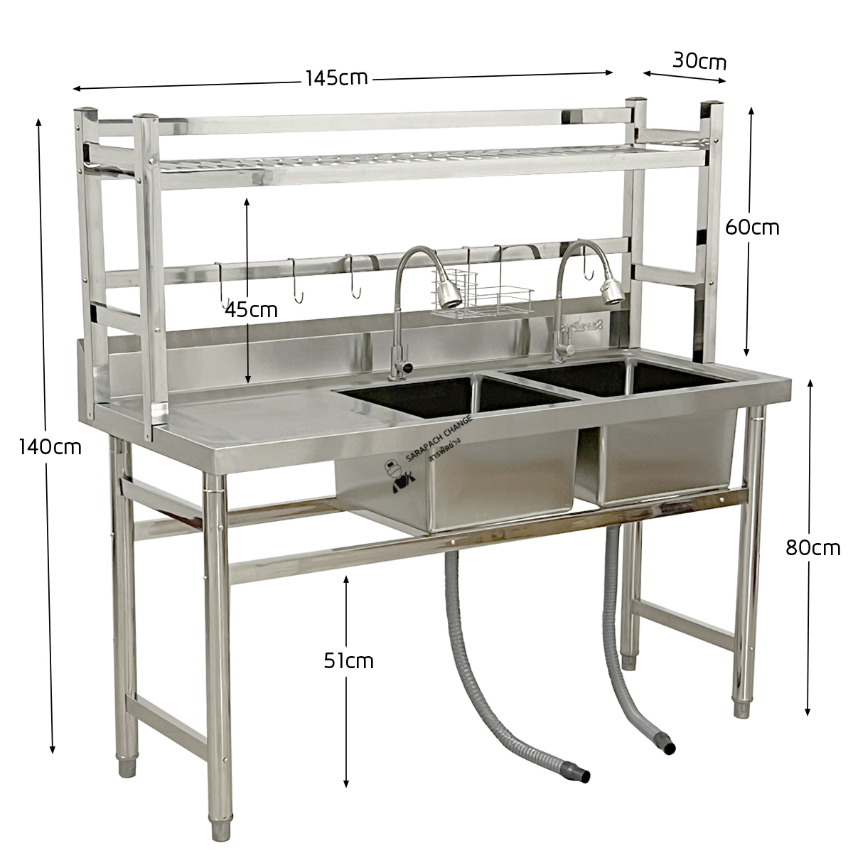 - ขนาดซิงค์พร้อมชั้น 145x60x140 ซม.
