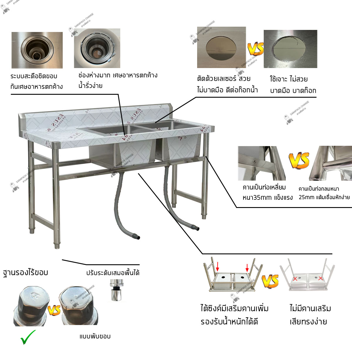 - ซิงค์ทำจากสแตนเลส เกรด304 หนา: 0.8-1 mm